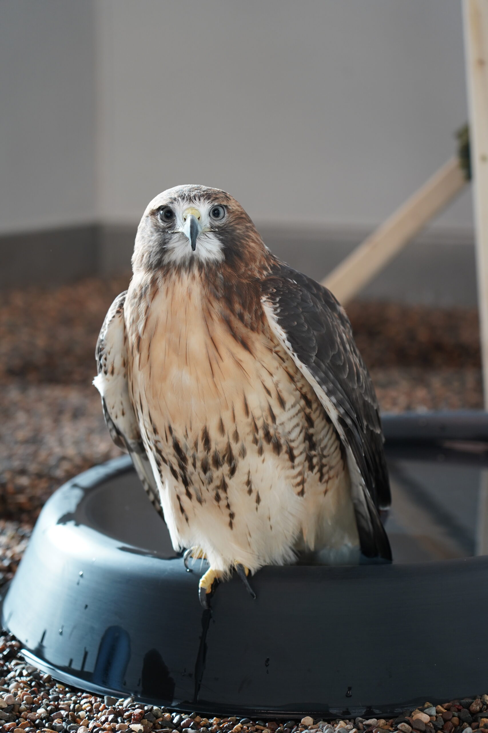 In the spring of 2016, Hollywood arrived at the National Eagle Center as our only non-eagle resident. She is a beautiful Red-tailed Hawk, a representative of North America’s most common raptor species.
